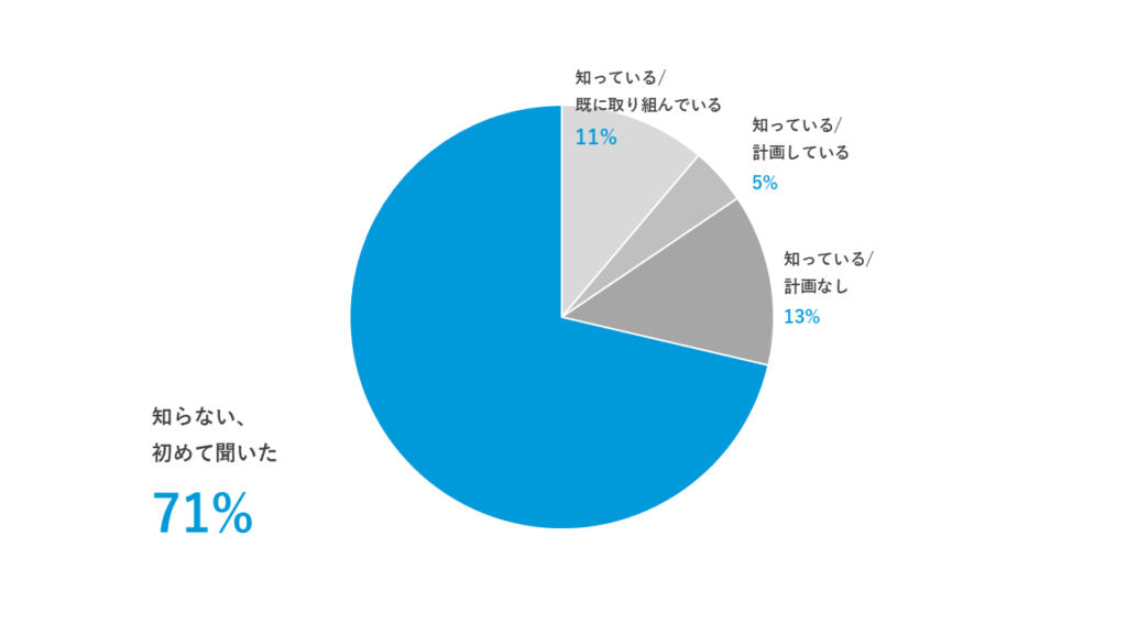 文部科学省も提唱していることもあり、ある程度認知はされていると予想していたのですが、実際に来場者の方々にアンケートを実施したところ、約70%の方が「知らない」または「初めて聞いた」と回答されました。