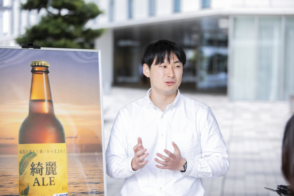 ビールづくりのリーダーを務める関口舜矢さんは「『甘さを抑えた、ちょっと大人な味』なのか。『誰でも飲みやすいような甘みを感じられてアルコールも抑えたような味』なのか。そこで分かれました。ただ、ビールの本来の目的はたくさんの方に飲んでいただいて、福島を知ってもらうことなので、甘さも残した飲みやすい味にしました」と説明する。