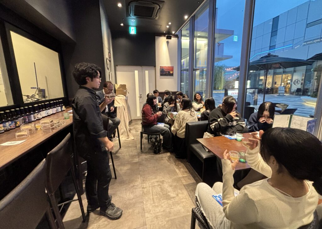 「正直、ビールの製法について聞かれるぐらいかなと思っていました。でも、製法の説明が終わると、学生たちが自主的にグループ分けをして、味の方向性について議論を始めたのです。それも、ビールが『好きな人』と『好きでない人』など、メンバーを変えて、さまざまな視点から議論しているのです。私へも「こういうことはできますか?」「こんなことはできませんか?」といった質問がバンバン飛んで来る。不安に思うどころか、こちらも強い気持ちで臨まないといけないと背筋が伸びました」