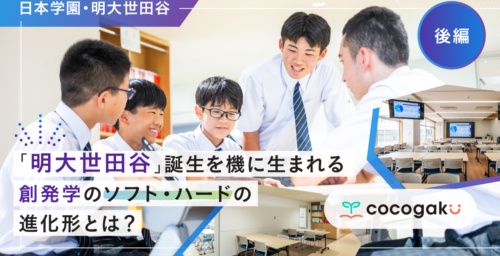 ”人は得意な道で成長すればよい”という教育方針を貫き、創発学のさらなる充実を図る日本学園。明大世田谷の誕生に向けて、新たに建設した校舎には創発学に根差した学びの空間が誕生しました。後編では新校舎に秘められた創発学を加速する仕掛けに迫っていきます。